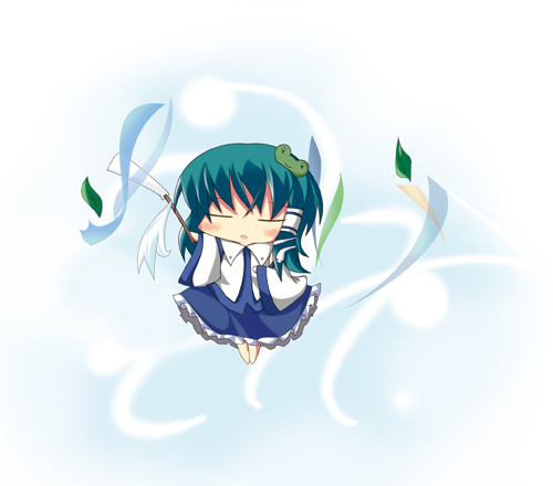れみぃは普通に餅を食べてたり、早苗さんは石に乗って修行中!的な感じに。